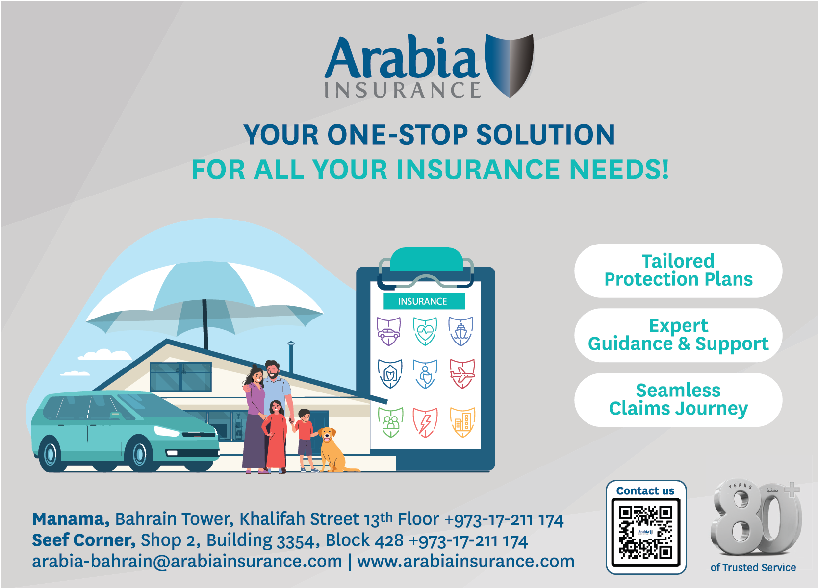 Established in 1944, Arabia Insurance Company has left an indelible mark across 7 Arab countries, boasting a heritage built on trust and 80 years of unparalleled regional expertise. We pride ourselves on being a cornerstone of customer engagement, offering tailored solutions that cater to the unique needs of our diverse clientele.